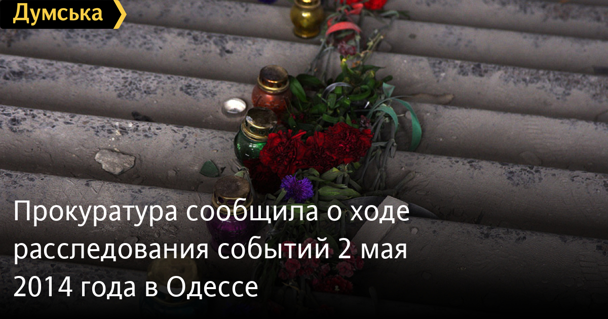 С января 2016 года по поручению Генеральной прокуратуры Украины досудебное расследование в объединенном уголовном производстве относительно событий 2 мая 2014 года в Одессе проводит следственное управление Национальной полиции в Одесской области под процессуальным руководством региональной прокуратуры. Накануне годовщины Одесской трагедии прокуратура отчиталась о ходе расследования.