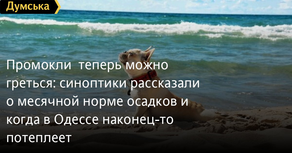 Промокли — тепер можна грітися: синоптики розповіли про місячну норму опадів і коли в Одесі нарешті потеплішаєВід 30 до 50% місячної норми опадів випало в більшості районів Одещини за два дні, 26 і 27 травня, а на півночі регіону — понад 90%. Як розповіла кореспонденту «Думської» начальник відділу метеопрогнозів Гідрометцентру Чорного та Азовського морів Олена Тарнавська, травень в Одесі видався на рідкість дощовим, але не рекордним. «39 мм для травня — це середня кількість опадів, порахована за останні 30 років, розповідає Тарнавська. — Цього місяця випало близько 60 мм, тобто майже в півтора раза вище за норму. Але це не рекорд. Наприклад, 1962 року в травні тільки за одну добу випало 66 мм. Цього року, я думаю, що це великий плюс для врожаю, тому що запас вологи в ґрунті збільшується. Але, наприклад, полуниця через це може бути більш водянистою». За її словами, вже найближчими днями погода в Одесі почне змінюватися і стане більше схожа на літню. Тож, схоже, зовсім скоро можна буде діставати легке вбрання! «Завтра під час проходження холодного фронту ми очікуємо вдень в Одесі невеликий дощ, по області місцями ще й грозу. Після цього температура підвищуватиметься. 31 травня і 1 червня прогнозується +22+27°C, а 2 і 3 червня стовпчики термометра в деяких районах області піднімуться до +28°C». СМЕРТЬ РОСІЙСЬКИМ ОКУПАНТАМ! Помітили помилку? Виділяйте слова з помилкою та натискайте control-enter |