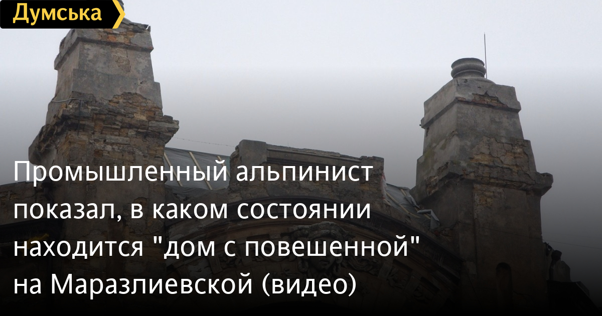 Промышленный альпинист, работающий на крыше дома №2 по Маразлиевской (угол переулка Нахимова), показал, в каком состоянии сейчас находится памятник архитектуры.