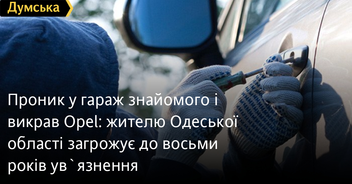 Проник у гараж знайомого і викрав Opel: жителю Одеської області загрожує до восьми років ув`язненняДо восьми років позбавлення волі загрожує жителю Подільського району, який викрав автомобіль Opel Omega у свого знайомого. Як повідомили у пресслужбі поліції Одеської області, чоловік проник у гараж товариша, який проживає в селищі Корсунці, коли того не було вдома. Він сів у незамкнену машину з ключами в замку запалювання і поїхав до себе додому. Потерпілий заявив про викрадення і правоохоронці розшукали зловмисника, який зізнався у скоєному. Машина стояла біля його будинку. Фігуранту повідомили про підозру за ч. 2 ст. 289 КК України (незаконне заволодіння транспортним засобом, вчинене з проникненням у приміщення). Санкція статті передбачає покарання від п'яти до восьми років позбавлення волі з конфіскацією майна або без неї. Чоловікові обрали запобіжний захід у вигляді цілодобового домашнього арешту. Помітили помилку? Виділяйте слова з помилкою та натискайте control-enter Новини по цій темі: 29 липня 2025: В Усатово Одеської області сталася перестрілка: поліція працює на місці (відео, оновлено) 28 липня 2025: П'яний на "Ягуарі" або гіпертонік? Звільнений топ-посадовець одеської поліції хоче повернутися на службу 19 червня 2025: Дівчинку, яку шукали сотні одеситів, знайшли вбитою: поліція працює з чоловіком, ймовірно причетним до загибелі 27 травня 2025: Увели гектар в університету: на Одещині засудили земельних аферистів, але без посадки і Хвоста |