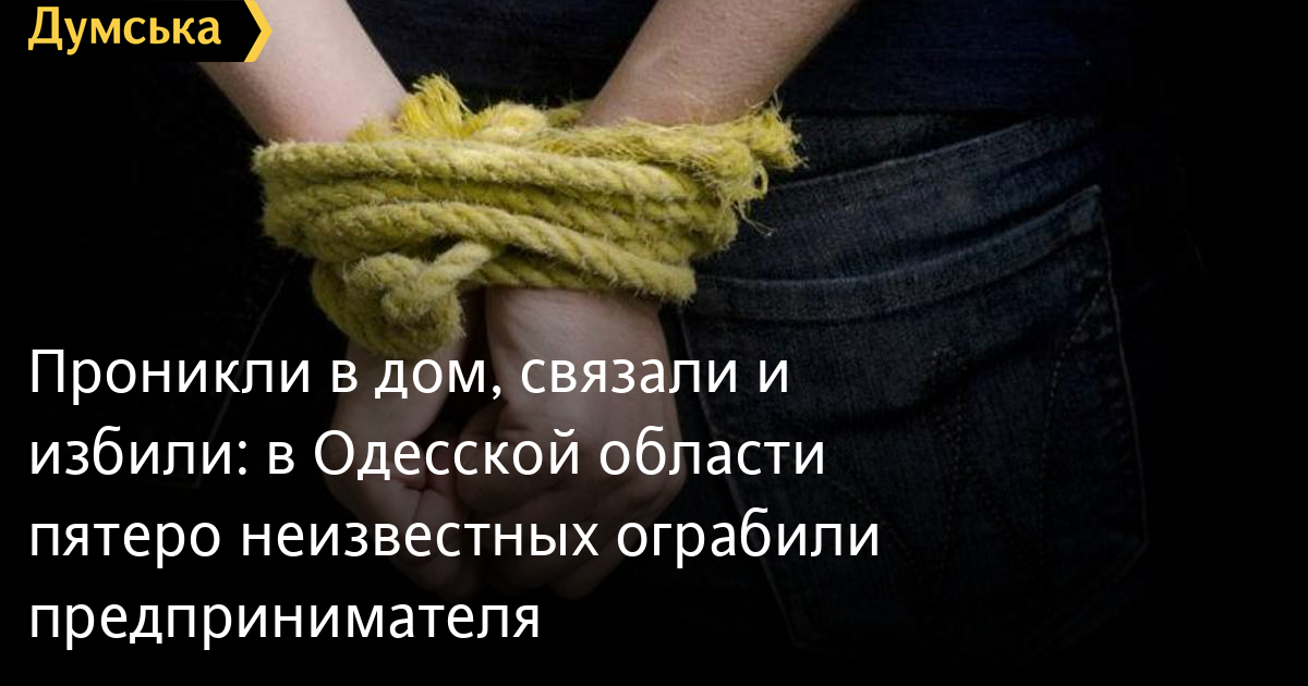 Проникли до будинку, зв`язали та побили: на Одещині п`ятеро невідомих пограбували підприємцяП'ятеро невідомих побили та пограбували приватного підприємця в селі Міняйлівка Одеської області. Як повідомили «Думській» джерела у правоохоронних органах, коли чоловік повернувся додому пізно ввечері 15 вересня, там уже були п'ятеро грабіжників в масках. Вони потрапили до будинку шляхом віджиму вікна. Грабіжники зв'язали потерпілого, почали бити його, вимагаючи віддати гроші. В результаті вони забрали у підприємця 4700 доларів, тисячу євро, 33 тисячі гривень та золотий ланцюжок, після чого втекли з місця злочину. Потерпілий отримав перелом носа та множинні забої. Нападників зараз розшукує поліція. Помітили помилку? Виділяйте слова з помилкою та натискайте control-enter |