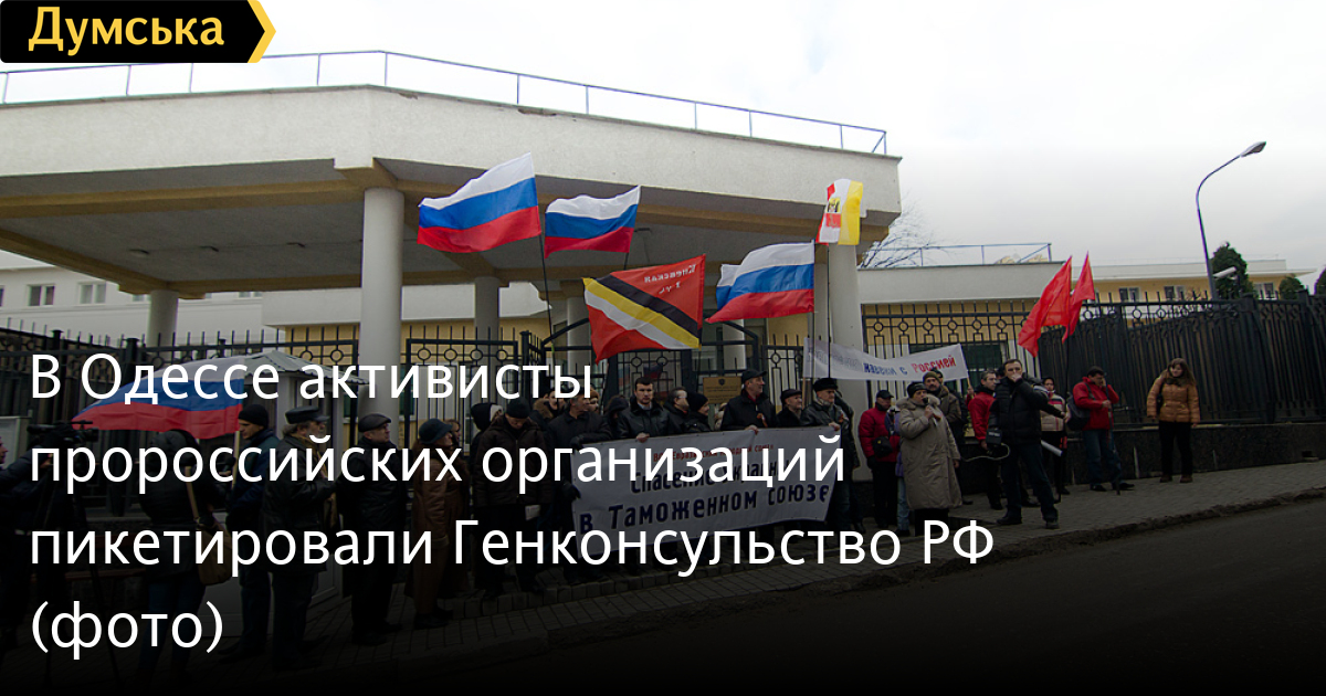 Представители пророссийских организаций провели сегодня митинг у стен Генерального консульства Российской Федерации в Одессе.