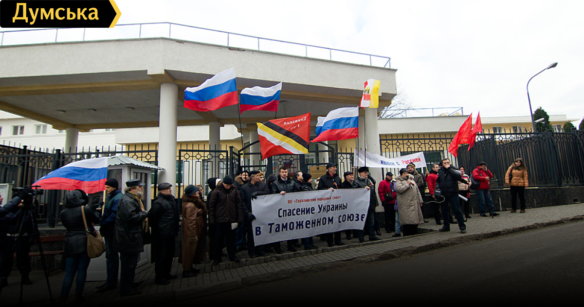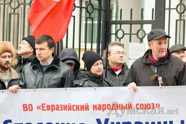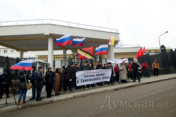 Как передает корреспондент «Думской», около двадцати активистов, в основном из организации «Дозор», выступили с лозунгом «Спасение Украины в Таможенном Союзе».