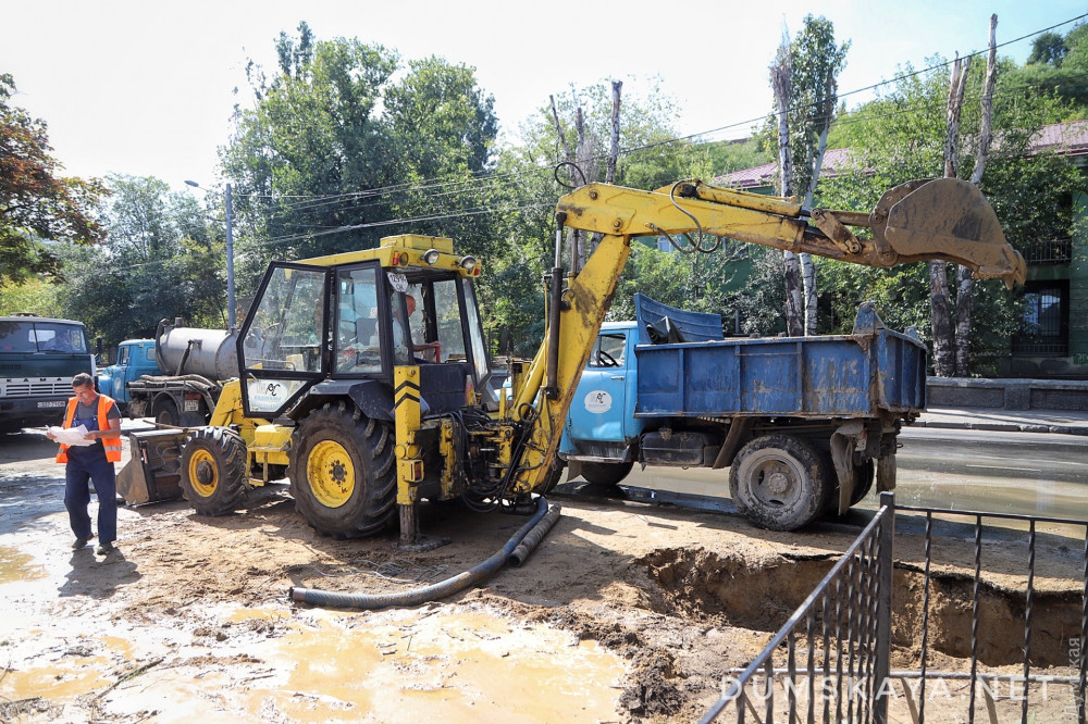 Как сообщает наш корреспондент, сотрудники «Инфоксводоканала» с помощью спецтехники пытаются добраться к месту прорыва.