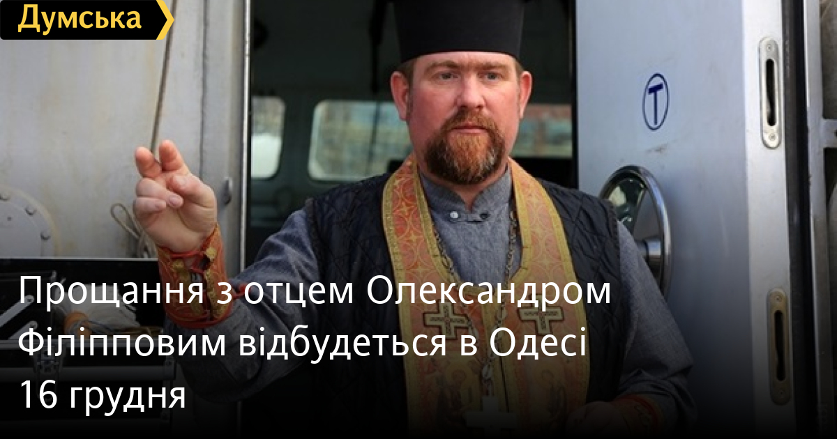 У п'ятницю, 16 грудня, в одеському Свято-Варваринському храмі Православної церкви України відбудеться церемонія прощання з настоятелем храму отцем Олександром Філіпповим.