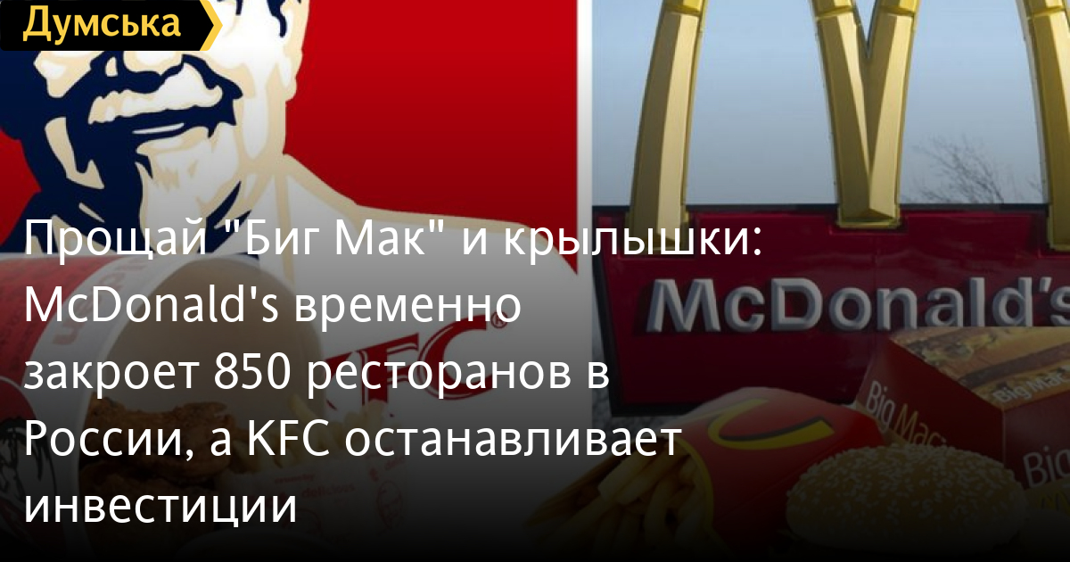 Всемирные гиганты фастфуда McDonald's и KFC сворачивают свою деятельность на территории страны-агрессора.