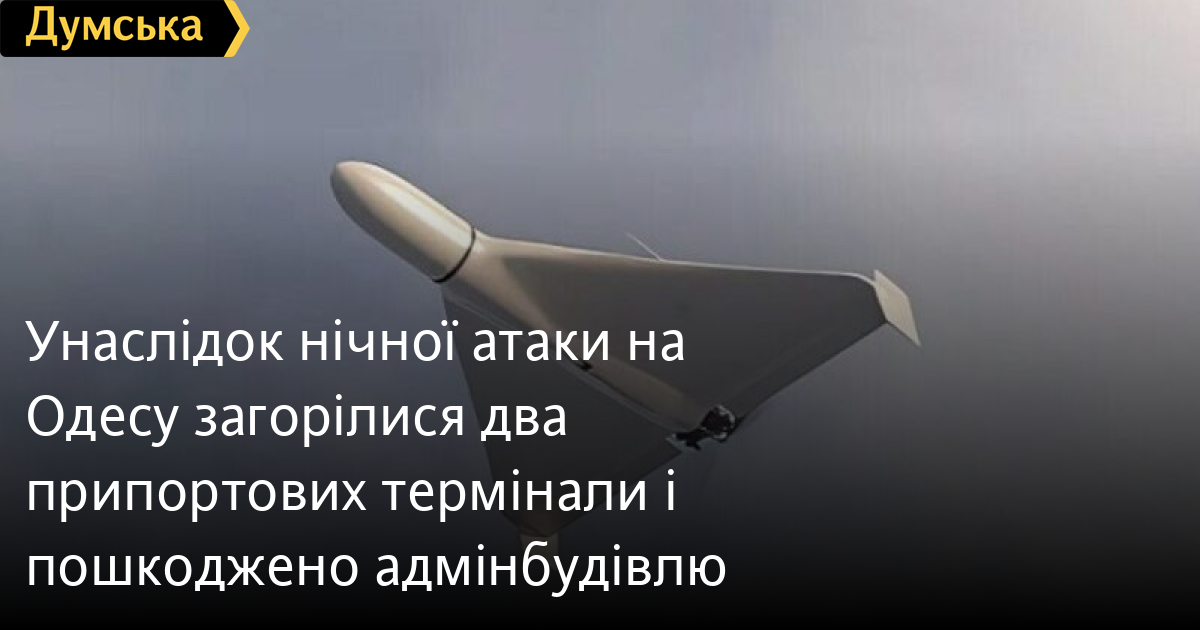 Загоряння двох припортових терміналів, включно із зерновим, сталося внаслідок падіння уламків дронів під час нічної атаки на Одесу.