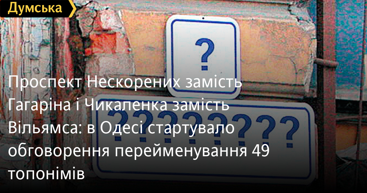 Проспект Нескорених замість Гагаріна і Чикаленка замість Вільямса: в Одесі стартувало обговорення перейменування 49 топонімів