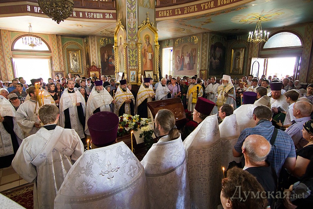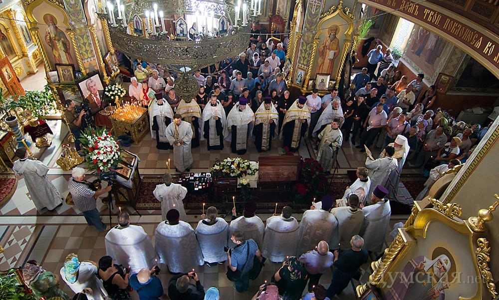 Прощание с известным одесситом, основателем и многолетним совладельцем рынка «Седьмой километр» Виктором Добрянским прошло сегодня в храме Святого мученика Виктора в поселке Авангард, что под Одессой Место для отпевания было выбрано неспроста: этот храм, как и вся социальная инфраструктура Авангарда, был возведен на средства покойного. Попрощаться с создателем «Седьмого» пришло под тысячу человек. Экс-мэр Одессы Руслан Боделан вспоминает о Добрянском как о добром и хорошем человеке: «Есть люди-разрушители, а есть созидатели. Он был созидателем: создавал материальные ценности, создавал рабочие места. А как он поселок Авангард изменил, как навел тут порядок? Он был очень добрый душевный человек», — сказал Боделан. Экс-мэр добавил, что после смерти Добрянского возможна война за его наследство: «У нас это не ново. Тяжело создавать, очень легко забирать. Забирать силой, еще какими-то методами. Думается, что рано или поздно это закончится в нашей стране», — добавил бывший городской голова. На панихиде также присутствовали вице-мэры Одессы Светлана Бедрега и Мария Стоцкая, глава Овидиопольской райгосадминистрации Александр Орлов, вице-губернатор Дмитрий Волошенков, депутат горсовета Игорь Димитриев, бизнес-партнеры Добрянского Иван Аврамов и Борис Мельничук. Службу вел митрополит Агафангел, который сказал много хорошего о покойном. Организаторы позаботились о самочувствии людей, пришедших попрощаться с Добрянским в тридцатиградусную жару: для них поставили столики с водой. Из церкви была налажена прямая трансляция панихиды на экран, установленный на улице. А пока наверху прощались с Добрянским, в нижнем храме жители Авангарда отмечали православный праздник Маковея. Фото: Александр Гиманов СМЕРТЬ РОСІЙСЬКИМ ОКУПАНТАМ! Помітили помилку? Виділяйте слова з помилкою та натискайте control-enter |