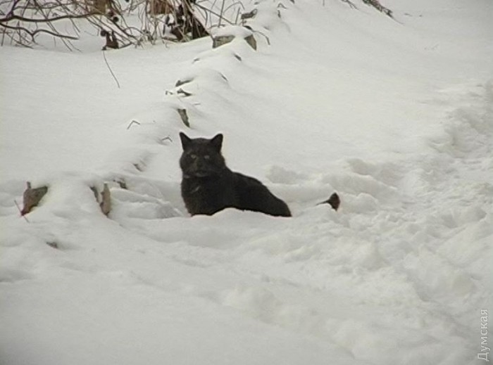 Интернат занесло снегом. Все в сугробах. Из снега высовывается крупная кошачья голова. Смотрит на нас. Тоже бдит. Тут было на редкость много толстых, пушистых котов. Они важно, вперевалочку ходили по территории. Сидели на облупленных остатках каменного забора, пристально смотрели из мусорников, не попрешься ли у них вкусняшки отбивать? А сейчас нету. Только один в снегу купается. Странно! Куда делись?