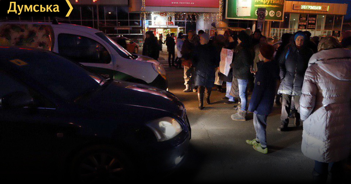 ОБНОВЛЕНО в 18:28. На место событий прибыли представители Малиновской райадминистрации. Чиновники пытаются уговорить протестующих разблокировать движение и продолжить диалог в кабинете.