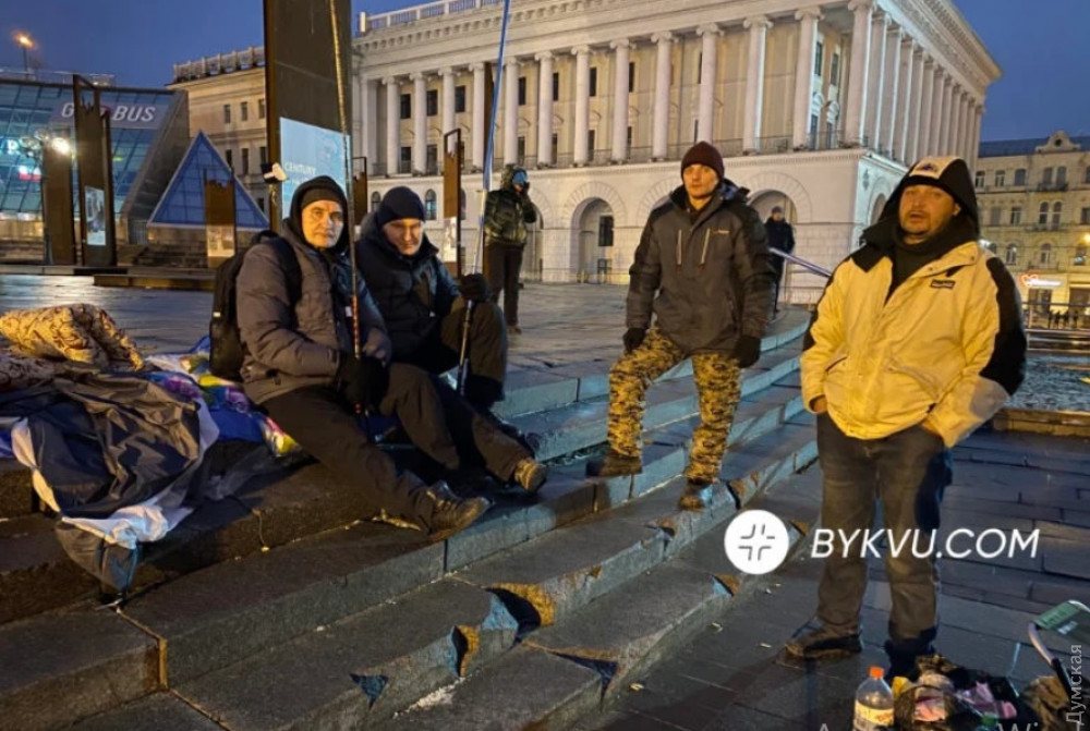 На Майдане Независимости ночь в палатках провели около 30 митингующих. Рядом дежурили силовики в автобусах, припаркованные вдоль Крещатика, пишет «Буквы».