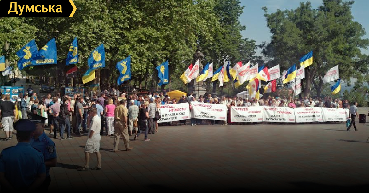 Против повышения тарифов и мемориала жертвам 2 мая: у мэрии митингуют активисты «Батькивщины» и «Свободы»