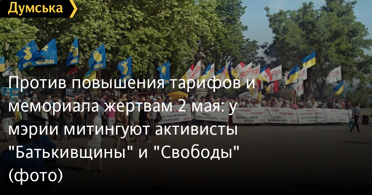 Как передает корреспондент «Думской», сторонники Юлии Тимошенко протестуют против повышения коммунальных тарифов, националисты — против принятия горсоветом решения об увековечении памяти жертв 2 мая.