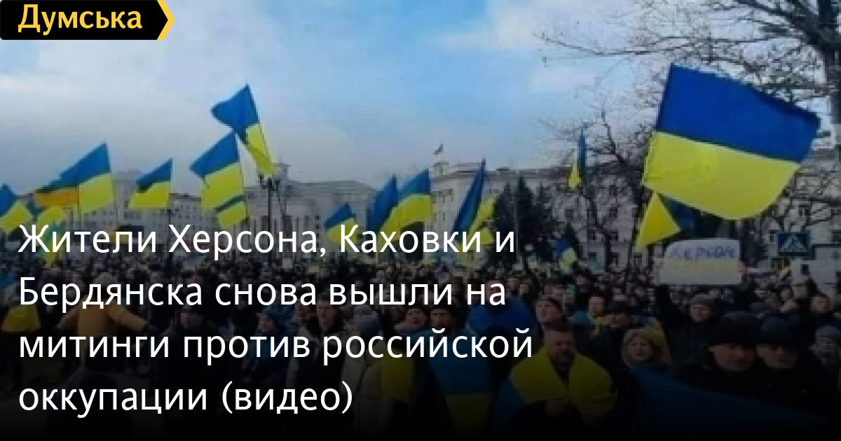 Жители Каховки скандировали: «Одна единственная соборная Украина!» и « Украина превыше всего!», а в Херсоне кричали захватчикам «Домой!». Перед площадью у администрации горожане пытались прогонять вражескую военную технику.