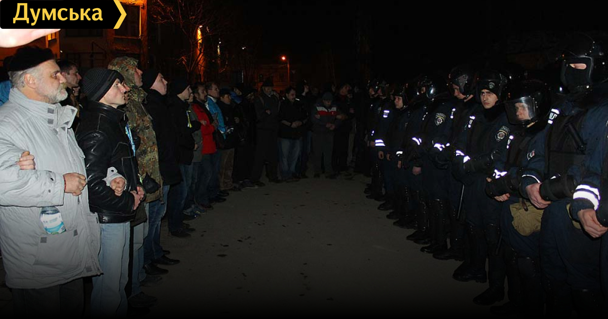 Как передает корреспондент «Думской» с места событий, «Газель» с беркутовцами выезжала под прикрытием милицейского оцепления, которое оттеснило толпу, а также в сопровождении легкового автомобиля.