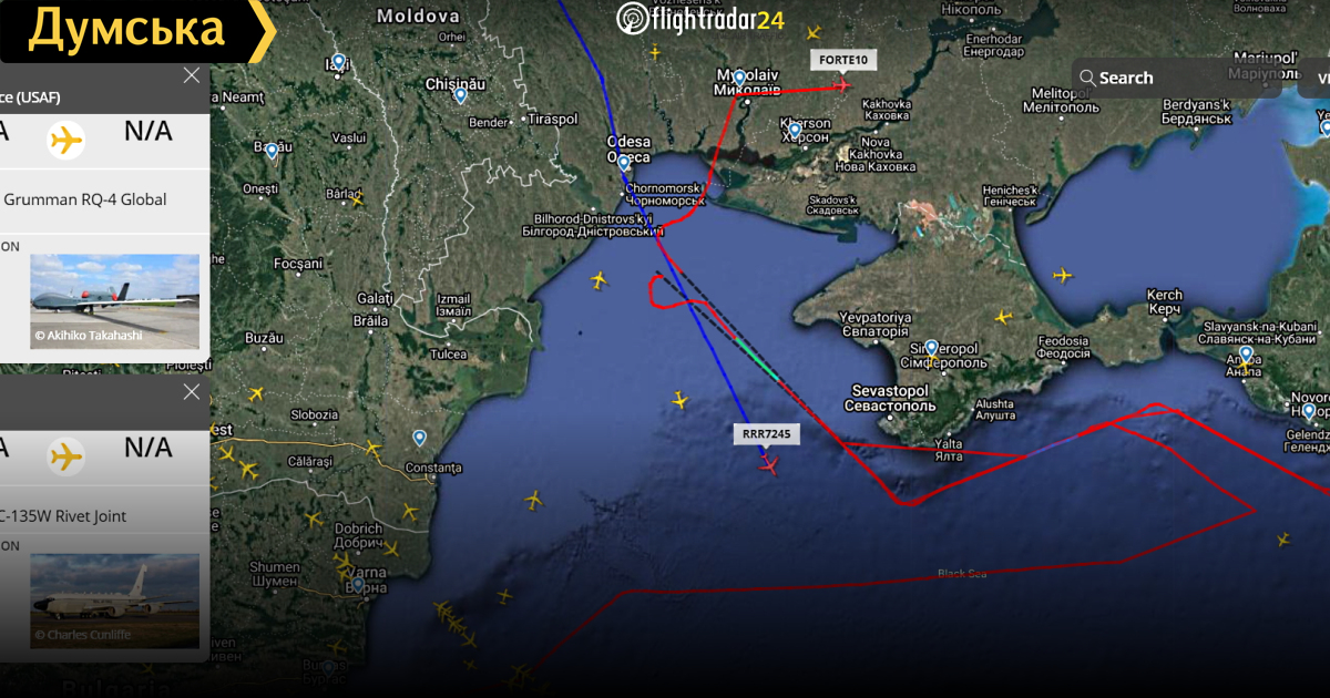 Противостояние в небе: у крымского побережья работают разведчики НАТО, а РФ подняла самолет ДРЛОСамолеты Североатлантического Альянса продолжают заниматься комплексной разведкой ситуации на оккупированном Крымском полуострове и линии фронта в Донецкой и Луганской областях Украины — несмотря на предупреждение об ограничении полетов, которое сделала на днях страна-агрессор. Как передает корреспондент «Думской», сегодня рано утром над Черным морем появился американский беспилотный разведчик RQ-4B-40 Global Hawk. Сделав несколько проходов вдоль побережья от Севастополя до Сочи, «ястреб» пролетел над Николаевом и днем появился над линией фронта. В 14 часов с аэродрома Таганрог военные РФ подняли свой новый самолет дальнего радиолокационного обнаружения А-100, созданный на базе транспортного самолета Ил-76. Эта машина сейчас проходит доводку и испытания на ТАНТК имени Бериева. Русская «большая тарелка» пошла в строну госграницы с Украиной в тот момент, когда «Глобал хаук» возвращался к Мариуполю. А-100 границу не пересекал, но, возможно, включал системы радиопротиводействия, пытаясь помешать управлению беспилотником и проведению разведки. В 13:00 над Черным морем появился британский стратегический разведчик Boeing RC-135W Rivet Joint. С недавних пор британцы стали регулярно появляться над крымским побережьем. После двухчасового мониторинга «стратег» ушел на родную базу Милденхолл. СМЕРТЬ РОСІЙСЬКИМ ОКУПАНТАМ! ![]() Российский А-100 с регистрационным номером RF78651 в небе рядом с границей. Синяя линия - реальный маршрут, пунктирная - предполагаемый после выключения транспондера. Помітили помилку? Виділяйте слова з помилкою та натискайте control-enter |