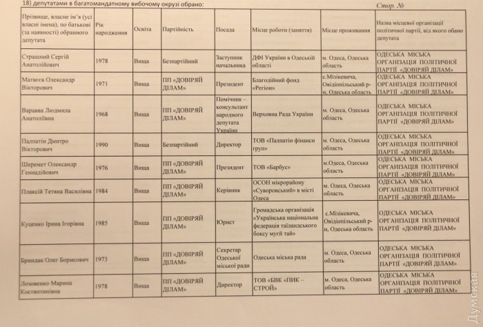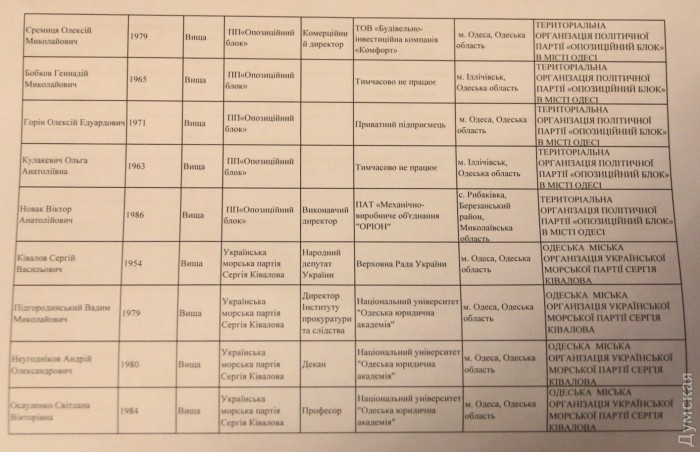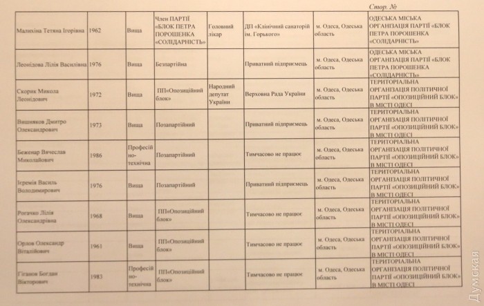 Публикуем полный список новых депутатов Одесского горсовета, утвержденный сегодня по результатам выборов горТИК.