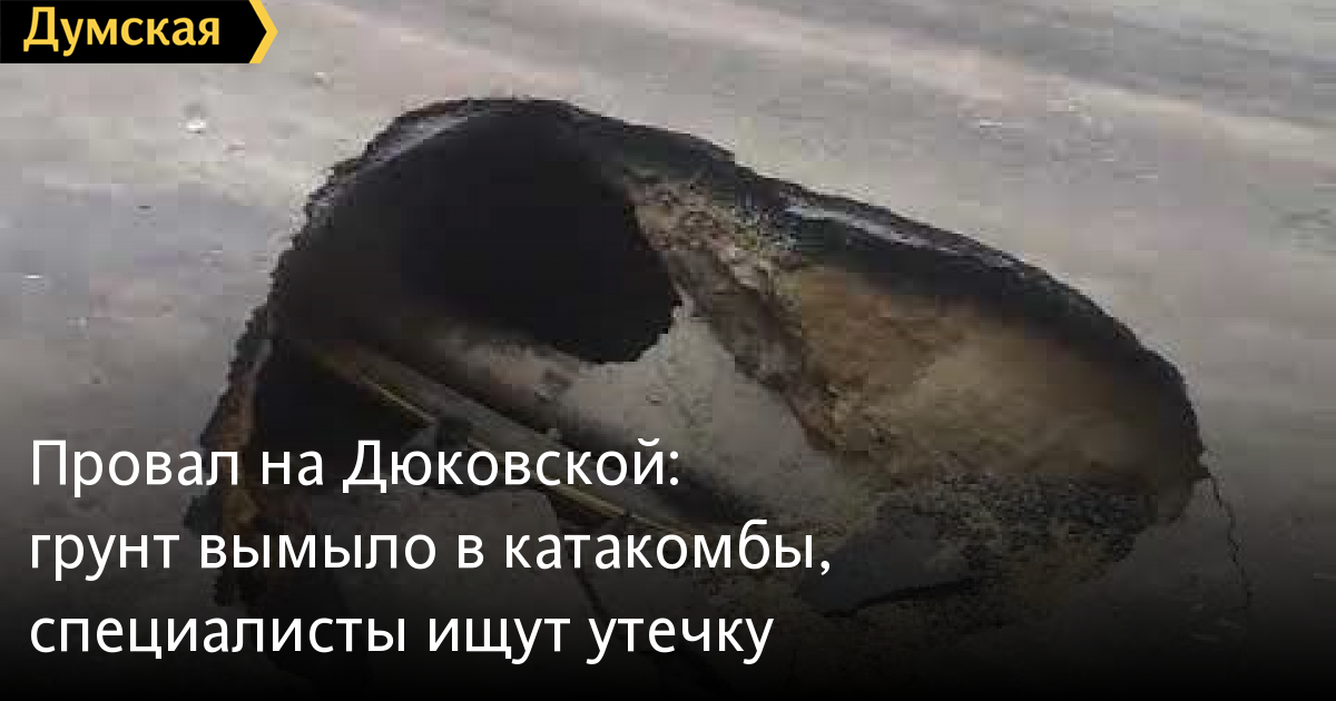 Специалисты коммунальных служб выясняют причину образования провала на Дюковской улице, между Дидрихсона и Композитора Нищинского. Как рассказал начальник управления инженерной защиты территории города и развития побережья Геннадий Мирошниченко, одна из труб дала утечку, и произошел вымыв грунта в катакомбы. Сейчас коммунальщики определяют, какую коммуникацию прорвало. После того, как причина подмыва будет устранена, провал затампонируют. Напомним, провал образовался в 8 утра под легковым автомобилем. К счастью, никто не пострадал. Заметили ошибку? Выделяйте слово с ошибкой и нажимайте control-enter