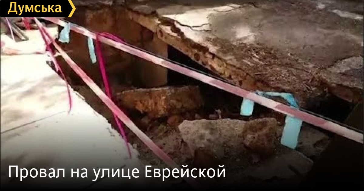 На Еврейской, 1 сильный поток воды вызвал провал посередине двора. По словам местных жителей, он произошёл прямо над подвалос, помещение которого ведёт в катакомбы.