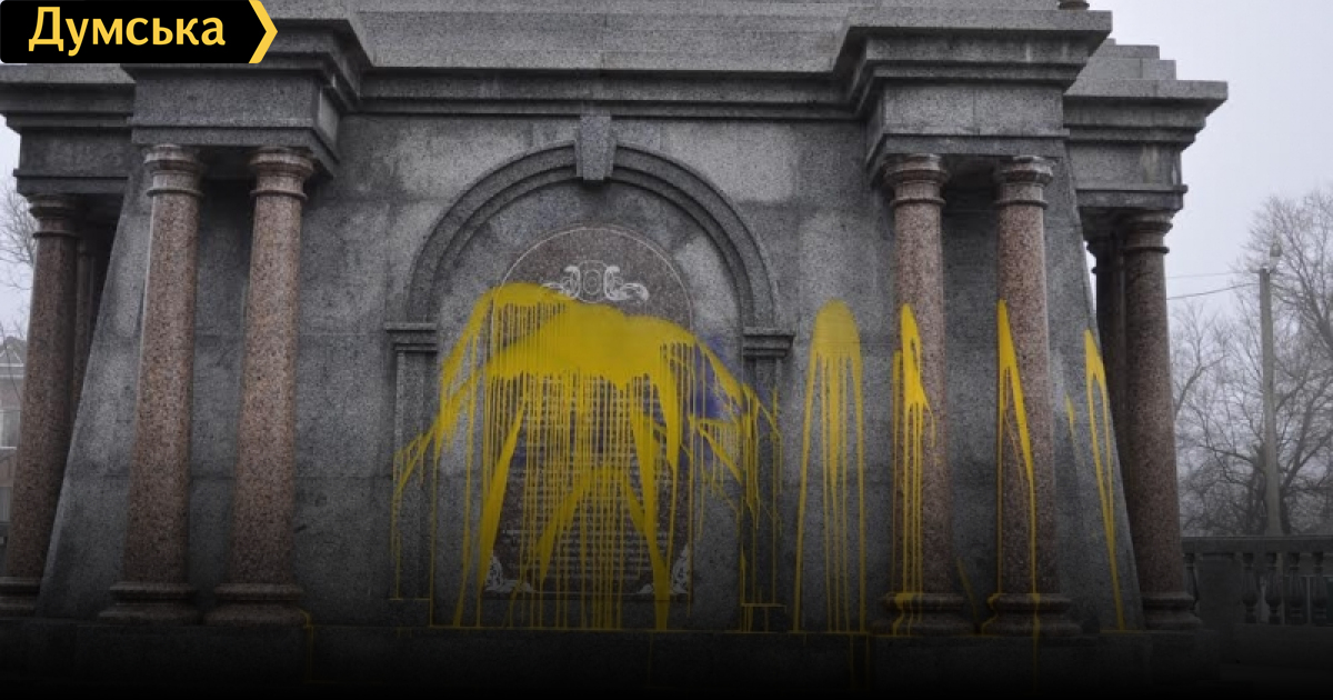 Неизвестные измазали масляной краской памятник болгарским ополченцам в Болграде Одесской области.