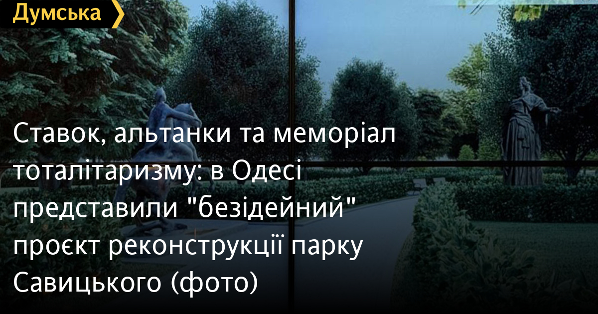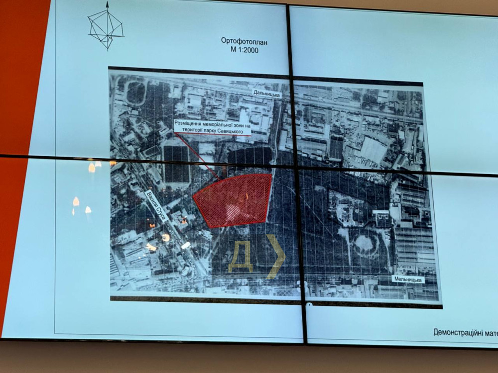 Під меморіал тоталітарної спадщини планують віддати 2,7 га в західній частині парку між Малиновським райсудом і ставком (загальна площа парку 19,36 га), передає кореспондент «Думської».