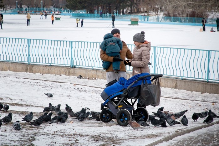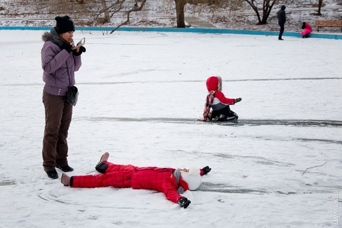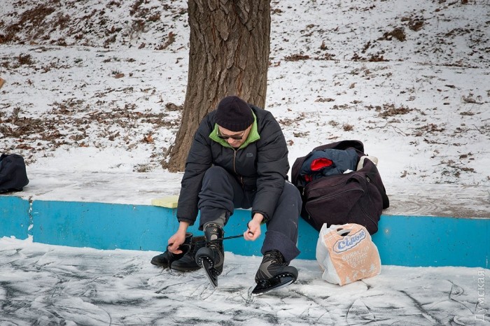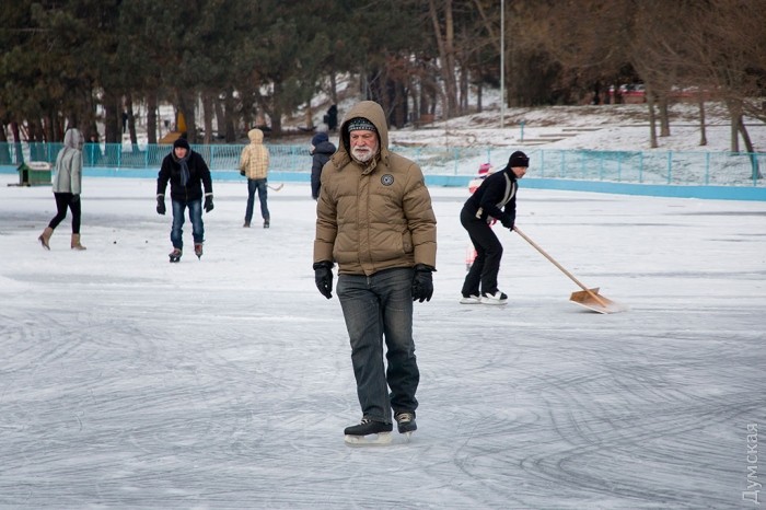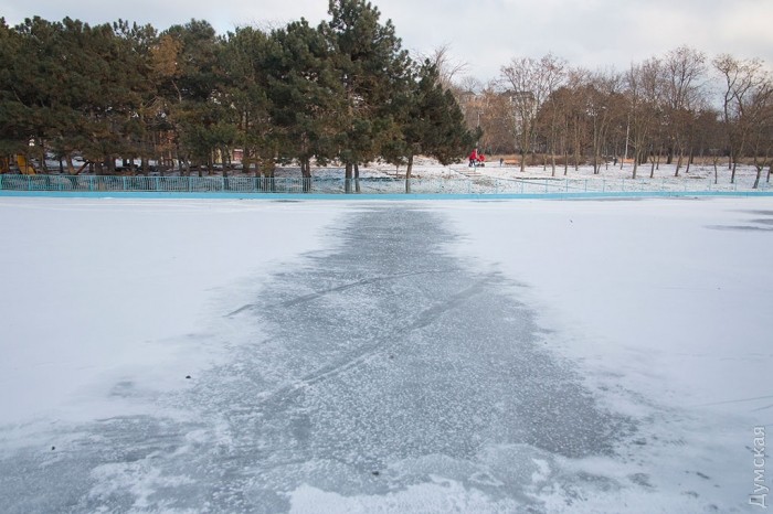 Пруды в парке Победы и Дюковском саду всего за один день полностью замерзли и превратились в естественный каток. Одесситы от мала до велика высыпали на лед.