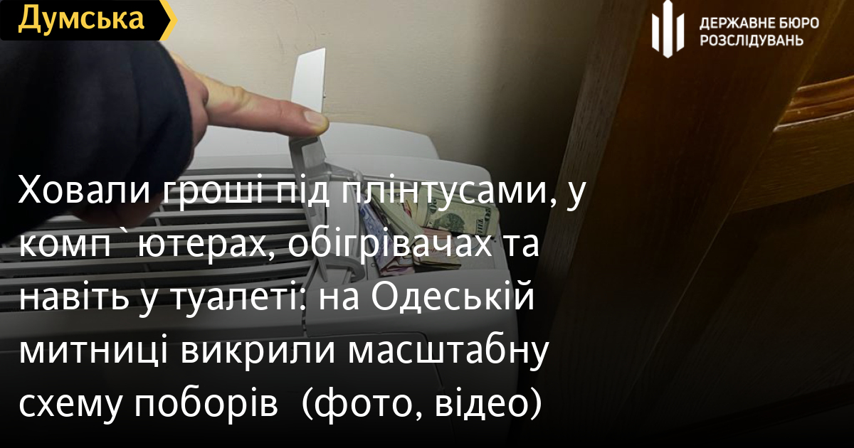 Ховали гроші під плінтусами, у комп`ютерах, обігрівачах та навіть у туалеті: на Одеській митниці викрили масштабну схему поборів (фото, відео)Митника, який отримав 1 200 доларів за безперешкодне ввезення генераторів та акумуляторів, затримали в Одесі. Про це повідомили в поліції. За інформацією ДБР та департаменту стратегічних розслідувань, митники брали гроші з абсолютно усіх імпортерів. Це підтверджують й обшуки адмінбудівлі митного поста. Крім того, правоохоронці виявили схованки грошей співробітників митниці. Інспектори лише за декілька годин зміни встигли «заробити» понад 65 тисяч гривень. Гроші ховали під плінтусами, у комп'ютерній техніці, обігрівачах, макулатурі та навіть у туалеті. Затриманого митника взяли на гарячому — під час отримання 1 000 доларів, ще 20 він встиг заробити трохи раніше. Фігурант брав гроші за нестворення штучних проблем при митному оформленні генераторів попри те, що нині діють пільгові умови для їх провезення. Такі послуги він оцінював у 50% від суми офіційних митних платежів. Лише за короткий період слідство задокументувало факти отримання посадовцем хабарів на кілька тисяч доларів. Вирішується питання про повідомлення йому про підозру у вимаганні та одержанні неправомірної вигоди (ч. 3 ст. 368 КК України) та обрання інспектору запобіжного заходу. Чоловіку загрожує до 10 років ув'язнення з конфіскацією майна. Слідство триває, встановлюється повне коло осіб, причетних до цієї та інших схем. Нагадаємо, що раніше ДБР виявило на Одеській митниці прихований товар вартістю понад 1,5 млрд гривень. Серед іншого, в контейнерах знайшли гелікоптер, елітні автомобілі, техніку, величезні партії взуття, у тому числі брендового, будівельні матеріали та устаткування. СМЕРТЬ РОСІЙСЬКИМ ОКУПАНТАМ! Помітили помилку? Виділяйте слова з помилкою та натискайте control-enter Новини по цій темі: 14 лютого 2023: Не лише одеський термінал: ДБР виявило на Чернівецькій митниці автозапчастини з рф (фото) 11 листопада 2022: Кальяни на 92 мільйони гривень, одяг на мільярд, решта - "дрібниці": оприлюднено подробиці перевірки "залежалих" контейнерів на Одеській митниці |