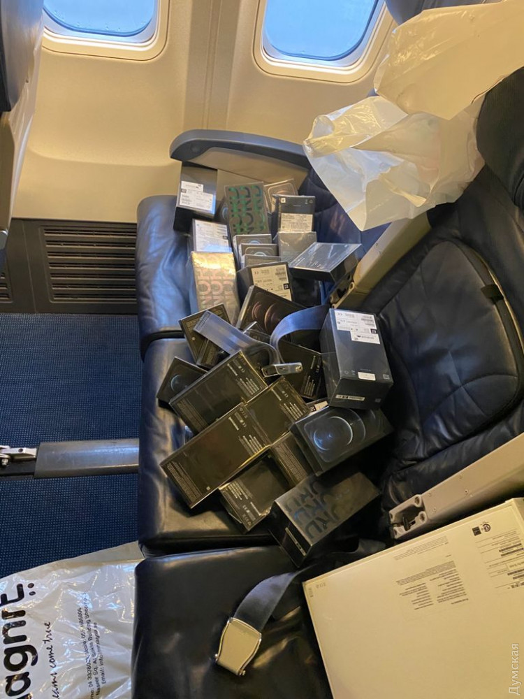 Так, во время осмотра прибывшего из Дубая самолета обнаружили 85 девайсов марки Apple, общей стоимостью примерно 100 тысяч долларов. Среди них, в частности, были телефоны и ноутбуки: iPhone 12 Pro Max, iPhone XS, iPhone XR, One Plus Nord, MacBook Pro.