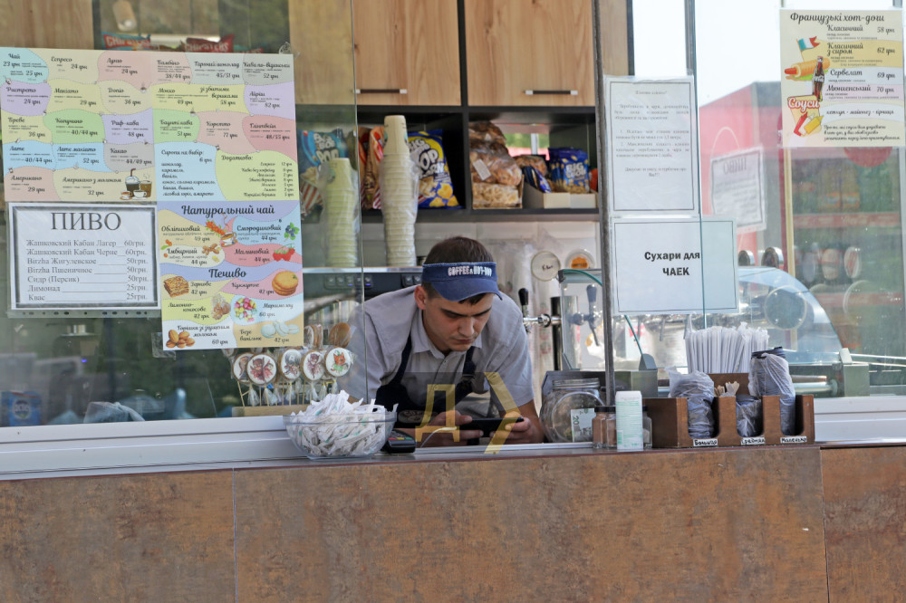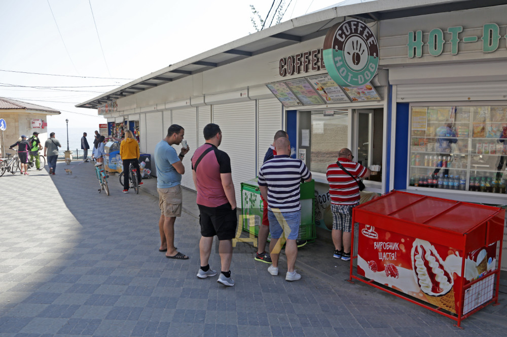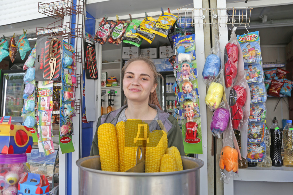 В этом году клиентов приходится зазывать, сетует продавщица Евгения: «Людей пока очень мало, а ассортимент и предложение, как в прошлом, очень удачном сезоне. Приходится что-то изобретать, вот сегодня отварили вкуснейшую сахарную кукурузу, по-одесски – пшонку, берут, но мало».