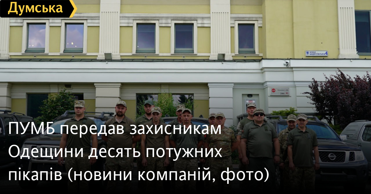 ПУМБ передав захисникам Одещини десять потужних пікапів (новини компаній, фото)Десять всепрохідних пікапів для додаткового захисту неба передав ПУМБ підрозділам Одеської області. Передача відбулася у межах ініціативи «Сталевий фронт» Ріната Ахметова. Потужні позашляховики будуть залучені для ураження повітряних цілей, захисту цивільного населення та об’єктів критичної інфраструктури. Саме на такі авто зараз значний попит у регіоні.