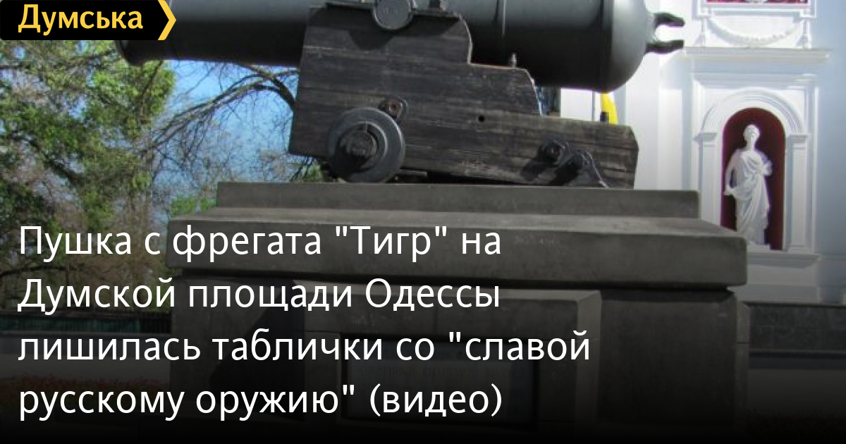 Речь идет о пушке, снятой с британского пароходофрегата «Тигр», который был уничтожен возле берегов Одессы в 1854 году.