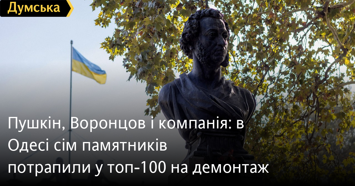 В Одесі серед кандидатів на демонтаж: погруддя Пушкіну на Приморському бульварі, пам’ятники Воронцову, Олександру ІІ, Льву Толстому, Черняховському, ще один — Пушкіну біля однойменного музею, а також погруддя Малиновському.