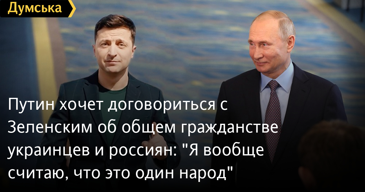 «Правда? Сказал? Это очень хорошо, — отметил Путин. — Это говорит о том, что мы договоримся, наверное, потому что у нас есть много общего. Я много раз говорил о том, что украинцы и русские – братские народы. И даже более того: я вообще считаю, что это один народ на самом деле, со своими особенностями: культурными, языковыми, историческими – но по сути своей один народ. И если у нас будет общее гражданство, от этого только выиграют и русские, и украинцы, мы будем сильнее и успешнее».