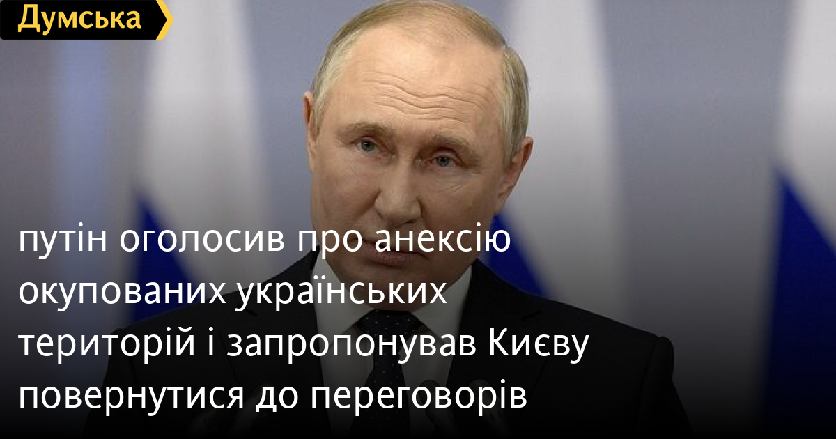 Після цього господар Кремля закликав Україну «припинити вогонь, усі бойові дії та повернутися за стіл переговорів». При цьому він підкреслив, що рф не обговорюватиме статус нових територій, оскільки «їх жителі зробили свій вибір і росія їх не зрадить».
