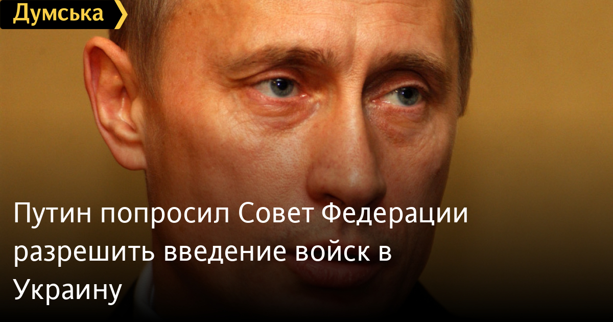 «В связи с экстраординарной ситуацией, сложившейся на Украине, угрозой жизни граждан Российской Федерации, наших соотечественников, личного состава воинского контингента Вооруженных Сил Российской Федерации, дислоцирующегося в соответствии с международным договором на территории Украины (Автономная Республика Крым), на основании пункта «г» части 1 статьи 102 Конституции Российской Федерации вношу в Совет Федерации Федерального Собрания Российской Федерации обращение об использовании Вооруженных Сил Российской Федерации на территории Украины до нормализации общественно-политической обстановки в этой стране», — цитирует документ пресс-служба российского президента.