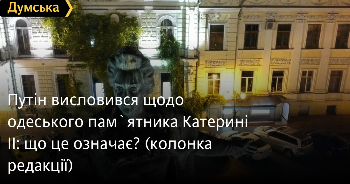 Ще вчора можна було вважати (або робити вигляд), що доля цього пам'ятника — питання суто одеське і суто історико-архітектурне. Ще вчора можна було не помічати портрет Катерини за спиною путіна під час його виступів, або чотирьох гауляйтерів анексованих українських областей, що позують на тлі її статуї в кремлі.
