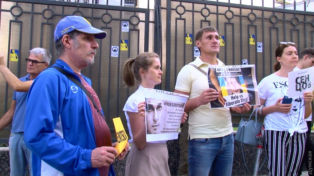Акция в поддержку осужденного на 20 лет режиссера Олега Сенцова, который на днях объявил о бессрочной голодовке, прошла сегодня у стен консульства Российской Федерации.