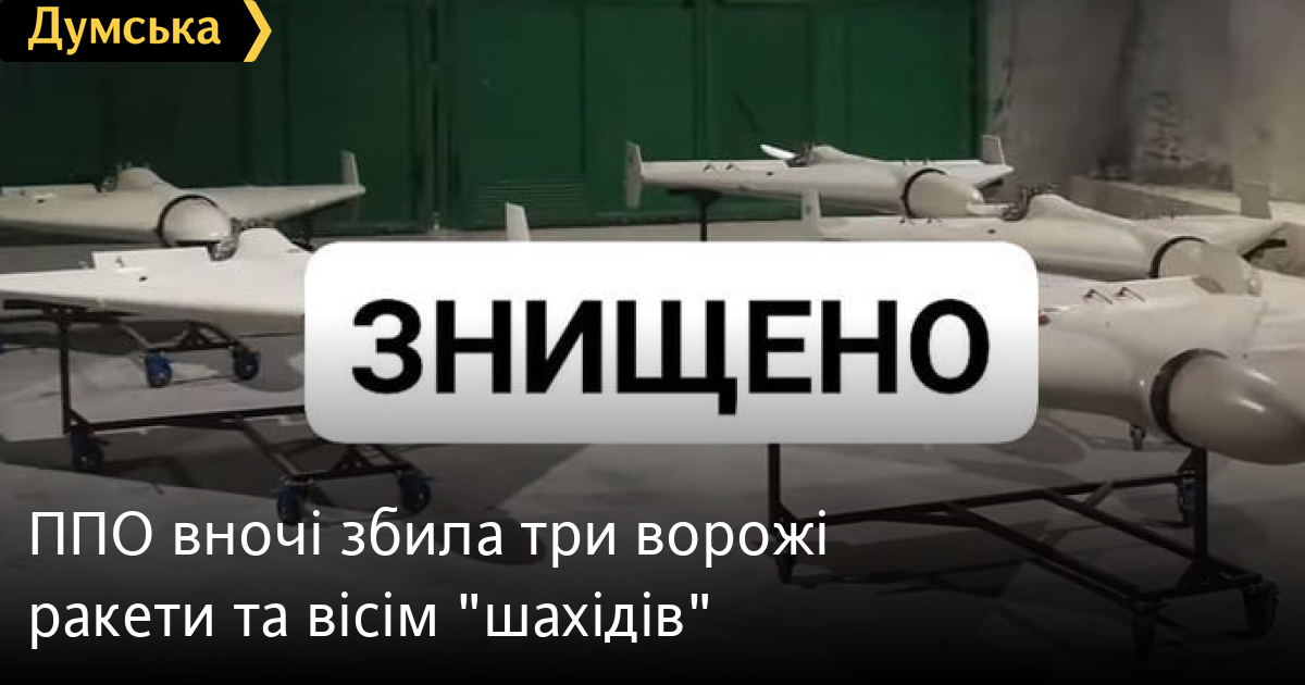 Протиповітряна оборона вночі вразила три крилаті ракети типу «Калібр» і вісім іранських дронів-камікадзе Shahed-136.