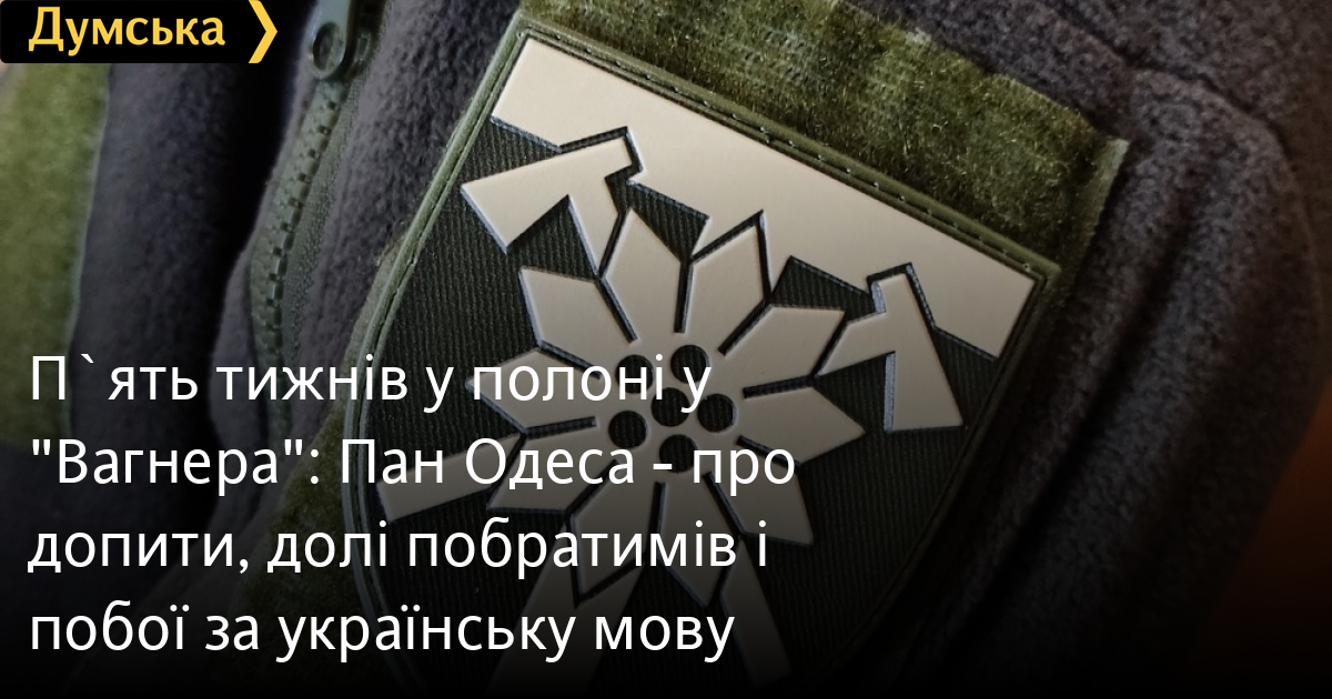 П`ять тижнів у полоні у «Вагнера»: Пан Одеса — про допити, долі побратимів і побої за українську мовуГерой цього матеріалу — простий одесит Сашко, якого, як і мільйони інших українців, підхопив вихор війни і підняв на висоту, падіння з якої означало б смерть. Мобілізація, навчання, Соледар, полон у «Вагнера». Шансів на щасливий результат відверто мало. І тим не менше, він живий, в Одесі з сім'єю і навіть з оптимізмом дивиться в майбутнє. «Думская» розповість історію Сашка його словами, від першої особи. Через цілком зрозумілі обставини прізвище нашого героя ми не публікуємо. «ЗАКАРПАТЦІ — ПРЕКРАСНІ ХЛОПЦІ, ЯКІ В НИХ СОКОВИТІ МАТЮКИ» «Мені 38 років і мене звуть Саша. До 24 лютого працював собі спокійно слюсарем на транспортному підприємстві. А того ранку навколо все почало гуркотіти й бахкати. Подзвонив хтось із начальства і каже: «Саша, війна». Я відповідаю: та яка, до біса, війна? Що за маячня? Потім заглянув в інтернет Пішов записуватися в тероборону, але там відповіли — місць немає. Я повернувся до повсякденного життя, а у вересні 2022 року на роботу прийшла повістка — з'явитися у військкомат. З'явився. Запитали, яка освіта. Я відповів, що вища, культурологічна. - Хочеш бути зв'язківцем? — запитують. - Як скажете. Ну й добре. Потім була учебка. Два місяці. Готували нас добротно. Вчили програмуванню, прошивці рацій, ну і звісно, такмед, вогнева підготовка. Коротше кажучи, через два місяці настав час розподілу. У центр підготовки надійшов офіційний лист із запрошенням у нашу 28-ту бригаду на посаду зв'язківця. Є вакантне місце, потрібен фахівець. Але мені відмовили. Мотивування було таке — такі рішення ухвалюються через Київ, там, де ти будеш, більше потрібен, там і служитимеш. І поїхав я до 128-ї гірсько-штурмової бригади. Напередодні нового 2023 року. Вони якраз відновлювали боєздатність. У колектив влився без проблем, хоча там я був один одесит, усі інші із Закарпаття. Але я за життя такий, що спільну мову хоч із чортом знайду. Хороші там мужики, веселі. У мене був позивний Одеса, а вони вирішили, що це нецікаво і називали «пан Одеса». Які ж у них смачні й цікаві мати, це треба чути. Пробули ми там кілька тижнів, поступово наближалися до лінії фронту. А потім, якогось дня, нам сказали, що висуваємося. - Куди? — питаю. - Бахмутський напрямок. Ніч. Сіли в автобус, поїхали, нас вивантажили. - Де ми перебуваємо? — цікавлюся я. - У Соледарі. Займайте позиції. Нашій групі з п'яти осіб дістався приватний будинок. Був там і підвал з укриттям, облаштували його. Наше завдання — спостерігати і доповідати. У напрямку «на дванадцять», якщо буде якийсь рух - відкривати вогонь на ураження без попередження. Кілька разів по рації передавали наказ відкрити вогонь у такому-то напрямку. Я так розумію, для прикриття інших груп. «НА НАС ЗАБИЛИ ХЕР, А ЖИТИ ХОТІЛОСЯ» Минуло п'ять днів, ми чекали ротації. Орків ми не бачили ні вдень, ні вночі, хоча в нас був тепловізор. Тварин різних бачили, навіть білок. Зате чули ворога постійно. Виття мін, постріли танків, до цього дуже швидко звикаєш. Невдовзі я захворів, а потім і легка контузія приспіла. Ми сиділи в підвалі. Міна прилетіла. Мені пощастило пригнутися, осколок пролетів над головою. Якби не пригнувся, зараз би інтерв'ю не давав. Свідомості я не втратив, робив усе, як учили: пригнутися, відкрити рот. Мене з контузією вивели з позиції. Три дні відпочи
