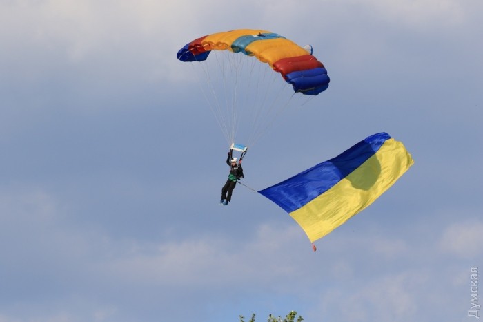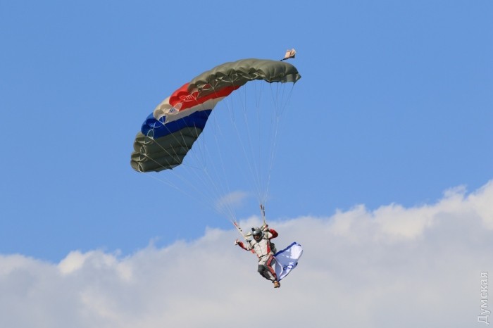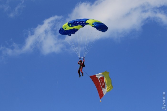 Кульминацией праздника стали сложнейшие прыжки парашютистов одесского аэроклуба с флагами Украины, Одессы и клуба «Динамо».