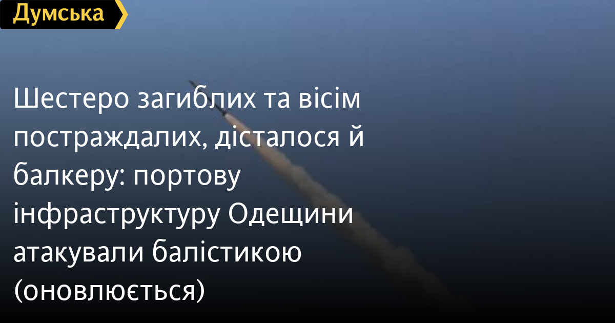 П’ятеро осіб загинули та дев’ятеро постраждали внаслідок атаки балістикою по портовій інфраструктурі Одеської області. Всі постраждалі – українці, повідомив віцепрем'єр-міністр з відновлення України Олексій Кулеба.