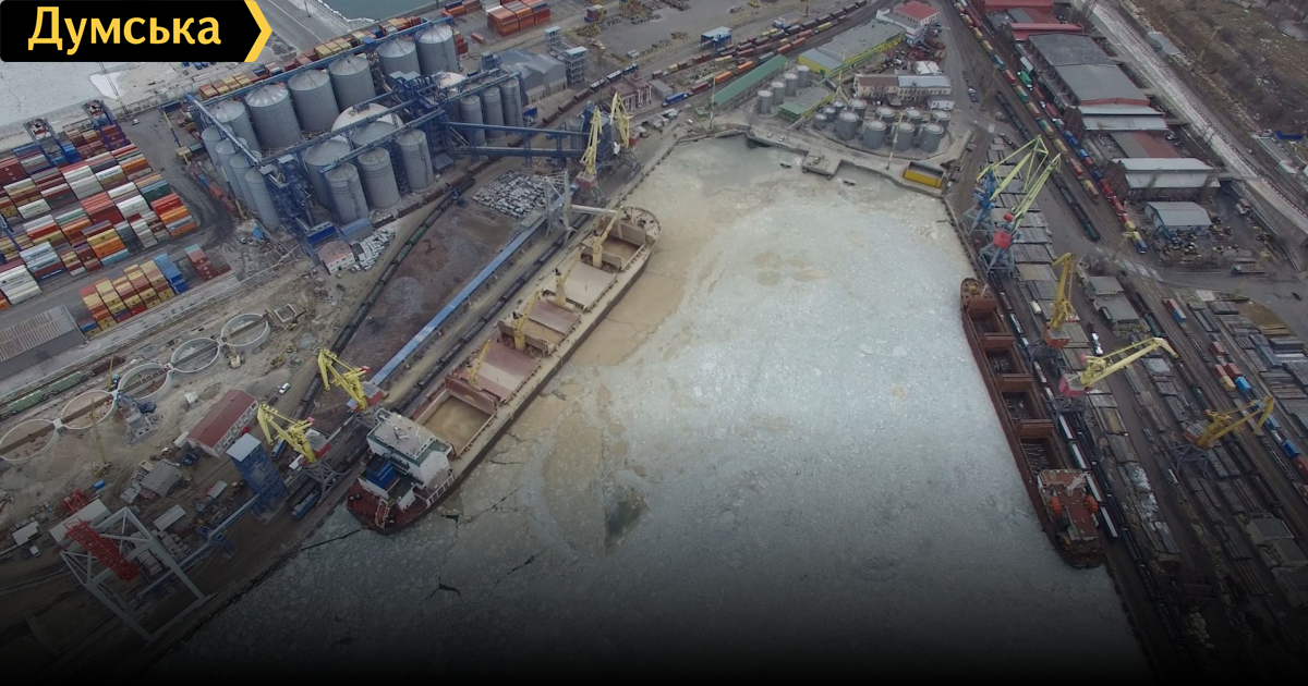 Попавший на фото балкер стоит у причала бывшего производственно-погрузочного комплекса №7, который арендует компания «Олимпекс Купе». На другой стороне гавани другая компания — «Металзюкрайн» — планирует возвести огромный зерновой комплекс мощностью боле 2 миллионов тонн в год.