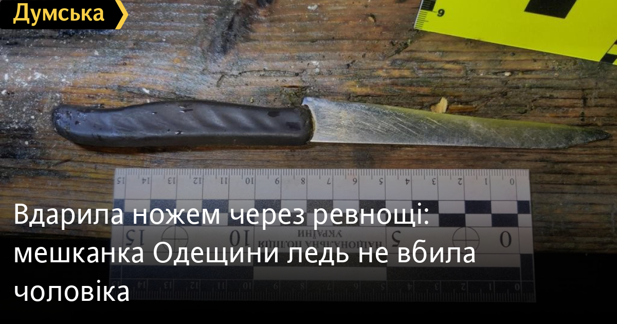 Вдарила ножем через ревнощі: мешканка Одещини ледь не вбила чоловікаПідозру в нанесенні чоловікові тяжкого тілесного ушкодження оголосили жительці Ізмаїльського району. Під час сварки дружина вдарила його ножем у живіт, повідомили в поліції. Постраждалого доправили до лікарні без свідомості. У нього діагностували пошкодження внутрішніх органів. Інцидент стався в одному із сіл Саф'янівської громади. Під час спільного розпивання алкоголю подружжя посварилося — жінка запідозрила чоловіка в невірності та вдарила його ножем. Поліцію та швидку викликав односелець, який перебував у гостях у пари. Відкрито кримінальне провадження за ч.1 ст. 121 Кримінального кодексу України. Жінці загрожує до восьми років в'язниці. Суд обрав для неї запобіжний захід у вигляді цілодобового домашнього арешту. Помітили помилку? Виділяйте слова з помилкою та натискайте control-enter Новини по цій темі: 29 липня 2025: В Усатово Одеської області сталася перестрілка: поліція працює на місці (відео, оновлено) 28 липня 2025: П'яний на "Ягуарі" або гіпертонік? Звільнений топ-посадовець одеської поліції хоче повернутися на службу 19 червня 2025: Дівчинку, яку шукали сотні одеситів, знайшли вбитою: поліція працює з чоловіком, ймовірно причетним до загибелі 27 травня 2025: Увели гектар в університету: на Одещині засудили земельних аферистів, але без посадки і Хвоста |