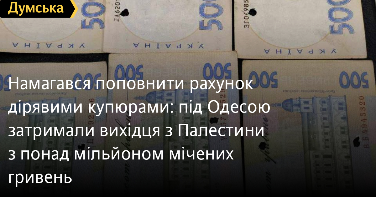 Намагався поповнити рахунок дірявими купюрами: під Одесою затримали вихідця з Палестини з понад мільйоном мічених гривеньПонад мільйон гривень вивіз зі звільнених територій Херсонщини до Чорноморська уродженець Палестини з українською посвідкою на проживання. Затримали його під час спроби покласти на рахунок мічені отворами купюри номіналом 100 і 200 грн, повідомили «Думській» у поліції. Пильні жителі Чорноморська повідомили на лінію 102 про людину, яка намагається поповнити рахунок через термінал, використовуючи діряві купюри. Його затримали з 6 400 грн купюрами по 200 грн. А от удома у зловмисника знайшли 10 000 доларів і 750 000 російських рублів. На роботі (у приміщенні офтальмологічного магазину) — 1 000 000 гривень. У пачках номіналом по 100 і 200 гривень. Усі банкноти мають однакові пошкодження — пробиття. Затриманий — 50-річний виходець із Палестини, який уже п'ять років мешкає в Україні і навіть має посвідку на проживання. Зазначимо, що Нацбанк позначив готівку, що залишилася в сховищах на тимчасово окупованих територіях. Так, недійсними є купюри з трьома і більше отворами, а також більш ніж наполовину залиті фарбою, або ті, від яких залишилося менше половини. СМЕРТЬ РОСІЙСЬКИМ ОКУПАНТАМ! Помітили помилку? Виділяйте слова з помилкою та натискайте control-enter Новини по цій темі: 29 липня 2025: В Усатово Одеської області сталася перестрілка: поліція працює на місці (відео, оновлено) 28 липня 2025: П'яний на "Ягуарі" або гіпертонік? Звільнений топ-посадовець одеської поліції хоче повернутися на службу 19 червня 2025: Дівчинку, яку шукали сотні одеситів, знайшли вбитою: поліція працює з чоловіком, ймовірно причетним до загибелі 27 травня 2025: Увели гектар в університету: на Одещині засудили земельних аферистів, але без посадки і Хвоста |