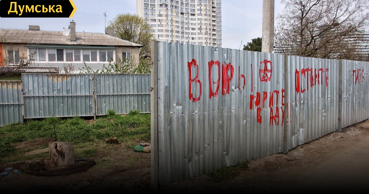 Скандальный забор, которым несколько дней назад обнесли участок зеленой зоны в парке «Юность», что на 8-й станции Большого Фонтана, демонтируют. Как зафиксировал наш корреспондент, рабочие аккуратно спиливают и складывают секции забора, на которых возмущенные местные жители оставили свои послания застройщику. Тем временем заседание Приморского районного суда Одессы, касающееся скандального участка, не состоялось по причине очередного «минирования» учреждения. Рассматривать дело будут 7 июня. Иск подали жители этого района, требуя отменить госакт на землю, оформленный еще при Боделане, в 2001 году. СМЕРТЬ РОСІЙСЬКИМ ОКУПАНТАМ! Помітили помилку? Виділяйте слова з помилкою та натискайте control-enter