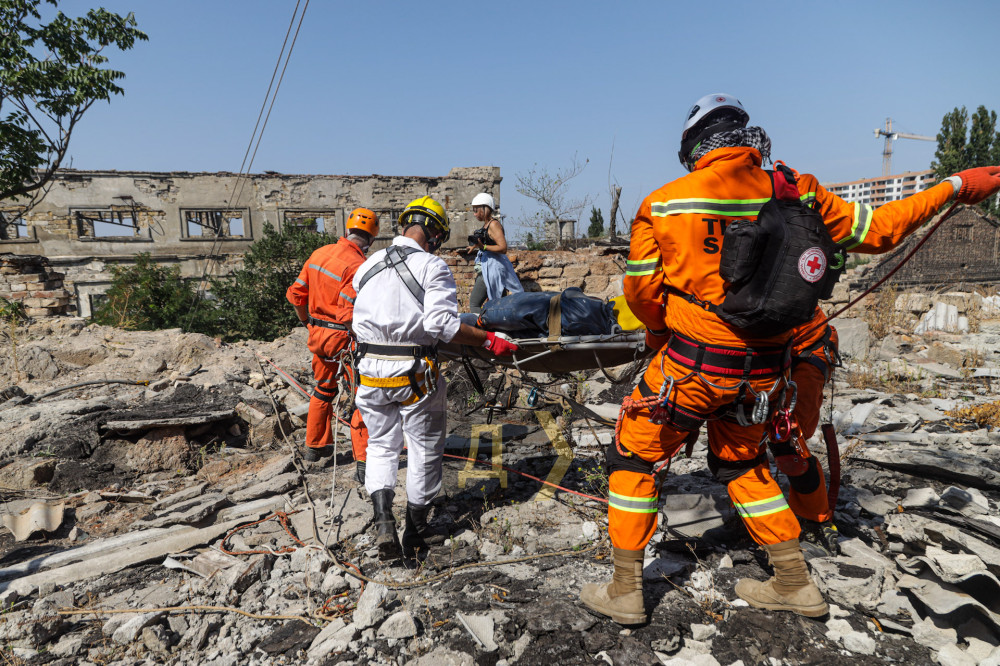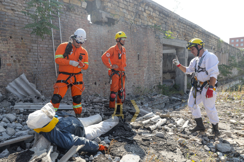 Після того, як потерпілого знайдено, за справу приймаються парамедики: знерухомлюють кінцівки, накладають джгути, за потреби проводять непрямий масаж серця. Далі постраждалого чи загиблого необхідно евакуювати. Найскладніше це зробити з верхніх поверхів будівлі. Тут майстер-клас показують співробітники підрозділу цивільного захисту порту ТІС, загін швидкого реагування одеського відділення Червоного Хреста та представники спелеологічного клубу «Пошук».