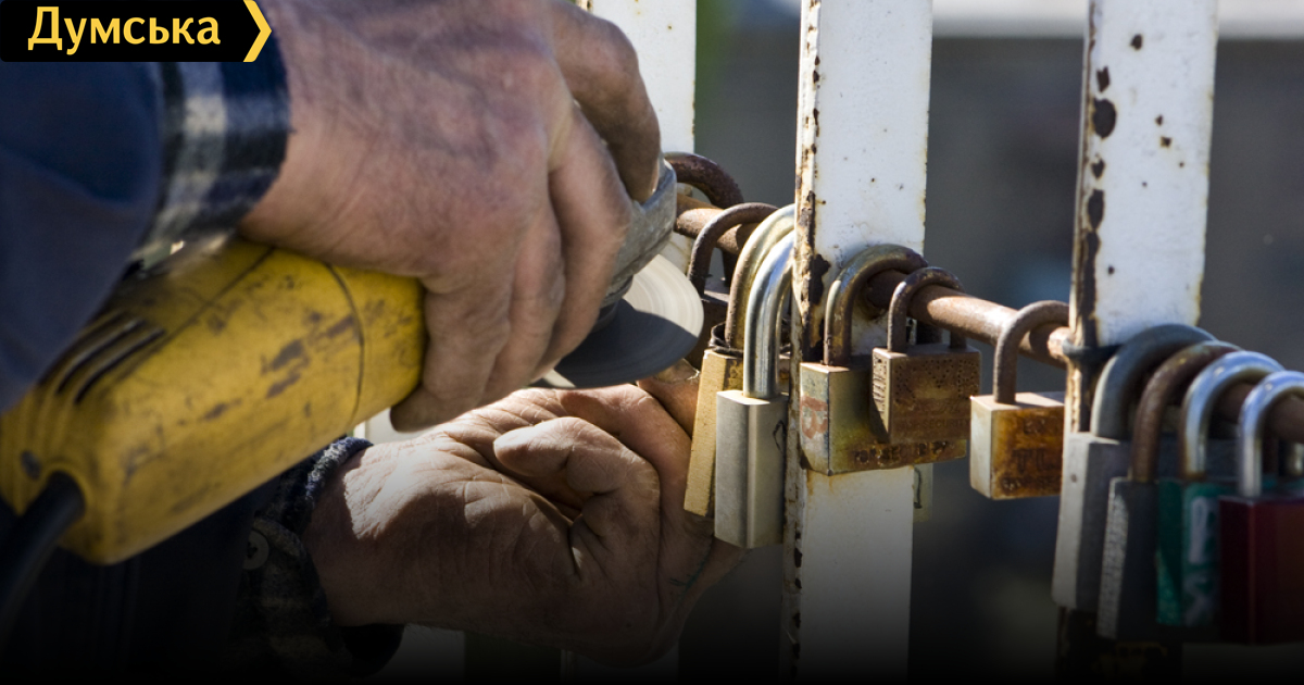 Сегодня на Тёщином мосту в Одессе целый день спиливают замочки, которыми влюблённые горожане символически скрепляют свои чувства. Демонтаж проводят рабочие коммунальных служб — видимо, не совсем трезвые и не вполне адекватные. Так, они грозились проломить голову корреспонденту «Думской», который фотографировал их за работой.