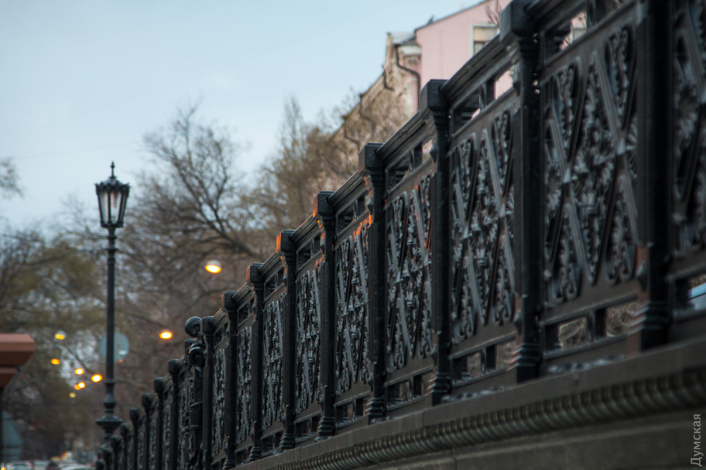 Любопытно, что ремонтники не смогли воссоздать литую ограду и прикрепили исторические гербы несимметрично.