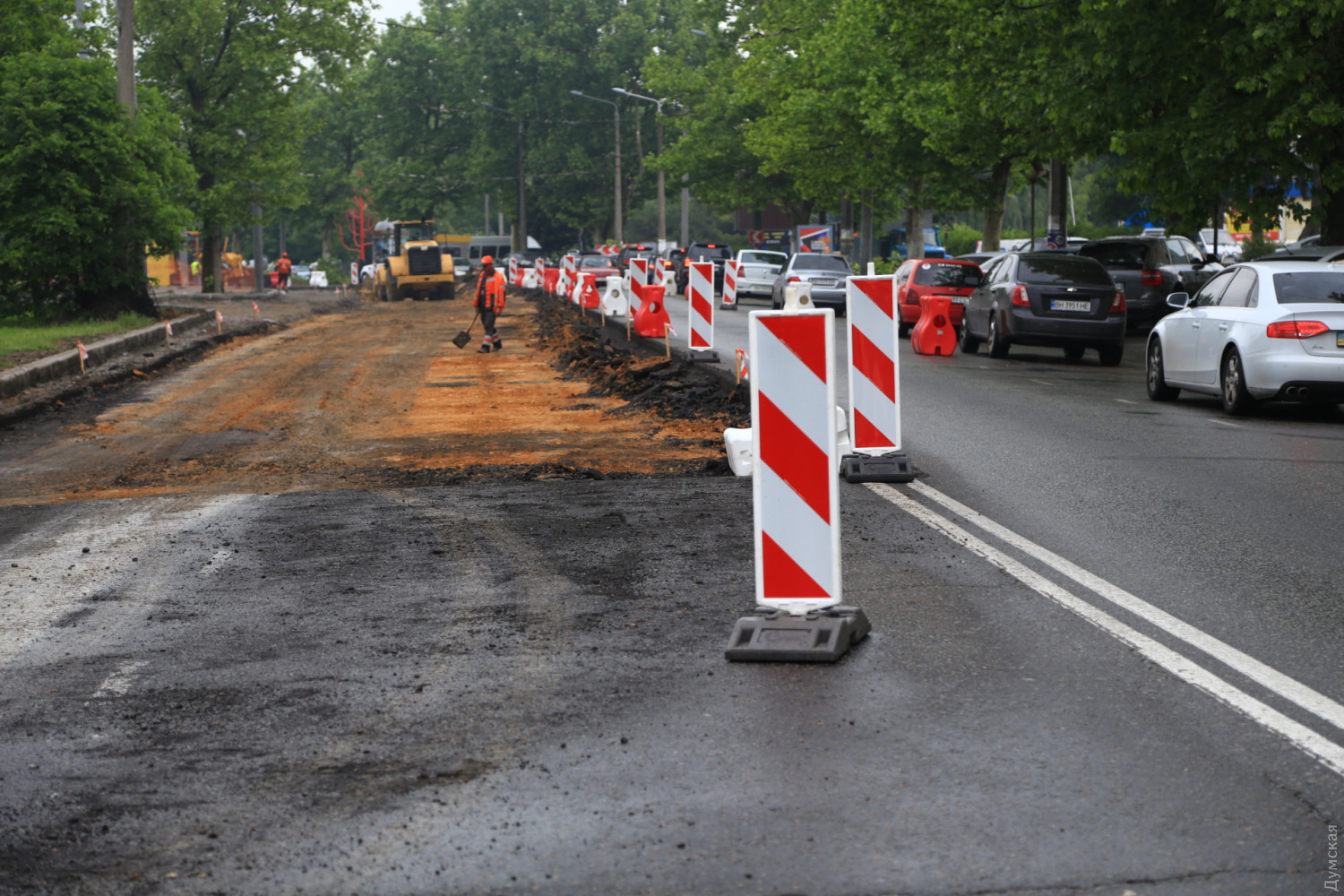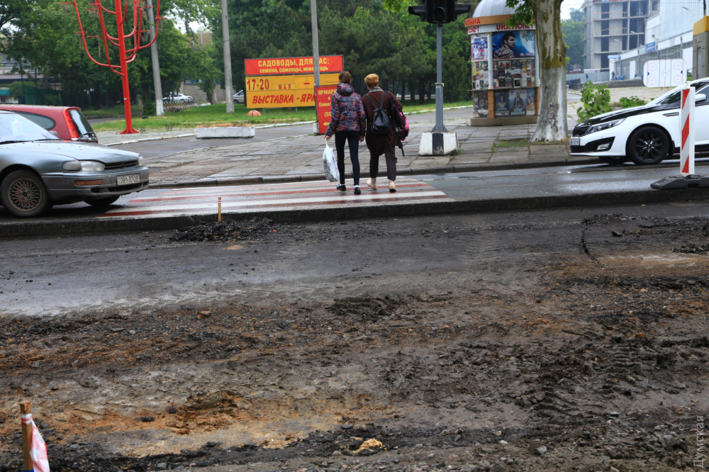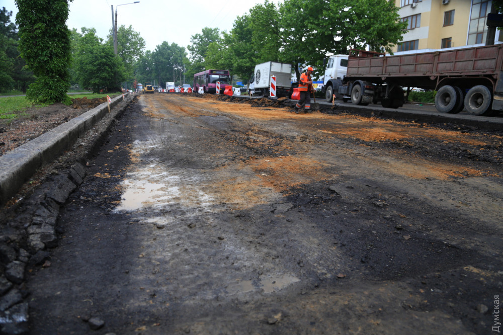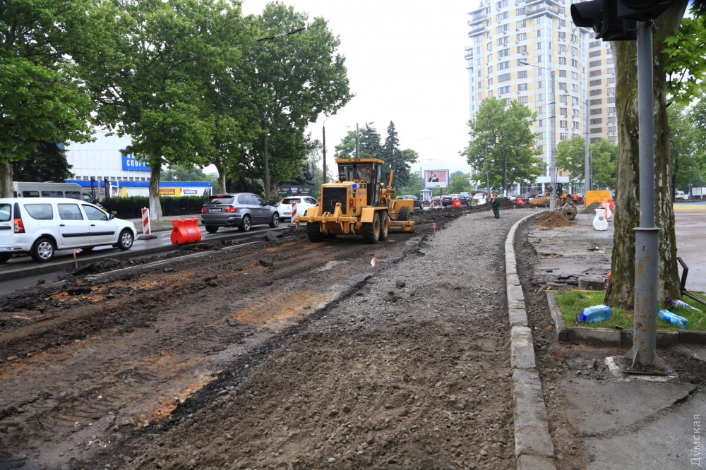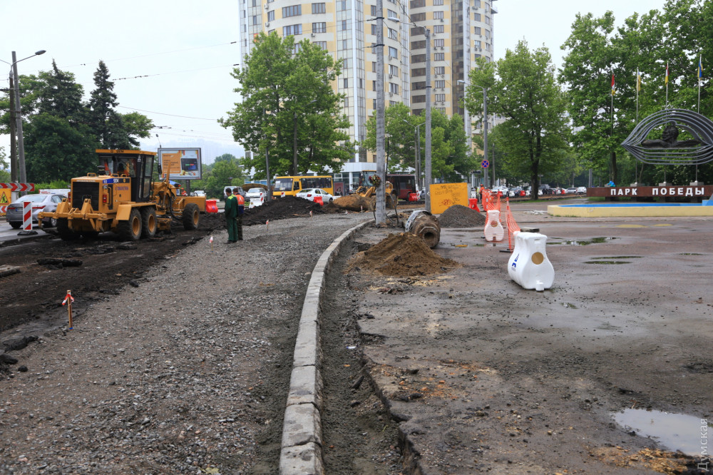 На проспекте Шевченко в Одессе началась активная фаза работ по «выпрямлению» опасного поворота в районе Дворца спорта.
